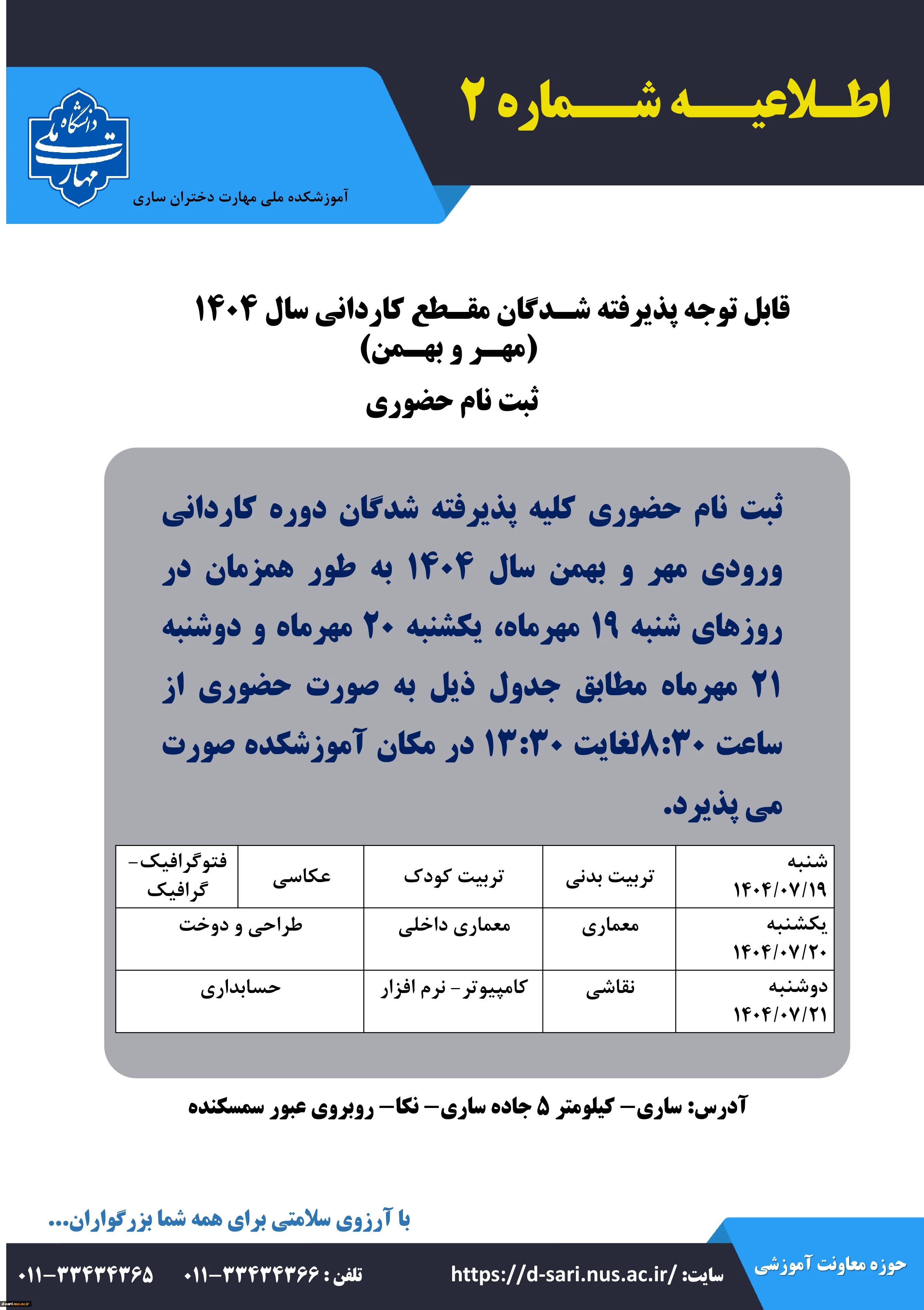 اطلاعیه ثبت نام پذیرفته شدگان آزمون کاردانی سال ۱۴۰۴ 5