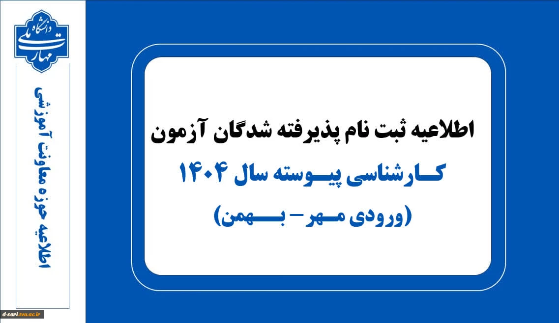 امتیاز دهید : اطلاعیه ثبت نام پذیرفته شدگان آزمون کارشناسی پیوسته ۱۴۰۴ 2 چهارشنبه 23 مهر 1404 ساعت 7:54