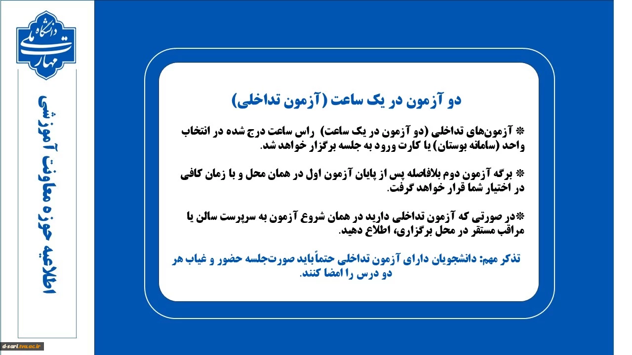 اطلاعیه های امتحانات نیمسال 041 8